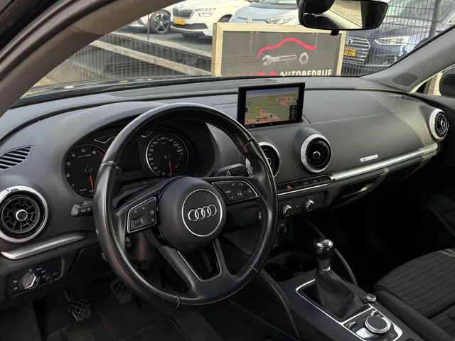 Audi A3 Sportback 1.0 TFSI Sport Lease Edition trekhaak cruise. Kenteken: NX-336-F; Merk: Audi; Model: A3 Sportback; APK tot: 26-07-2026; Tellerstand: 166714 KM; Carrosserievorm: Hatchback; Aantal deuren: 5; Brandstofsoort: Benzine; Bouwjaar: 2017; Transmissie: Handgeschakeld; Kleur: zwart; Motorinhoud: 999 cc; Aantal cilinders: 3; Motorcode: CHZ; Vermogen: 85 kW / 116pk; Ledig gewicht: 1155 kg; Max. trekgewicht: 1300 kg; Aantal zitplaatsen: 5; Verbruik: 4.7 l/100 km; BTW/Marge: Marge, de BTW is niet aftrekbaar; Lengte: 431 cm; Breedte: 179 cm; Aantal sleutels: 2; Onderhoudshistorie aanwezig: Ja; Motorrijtuigenbelasting: € 172 - 188 per kwartaal; Emissieklasse: Euro 6. Bijzondere opties & accessoires. Navigatiesysteem; Trekhaak. Comfort. Boordcomputer; Cruise control. Exterieur. Achterruitverwarming; Buitenspiegels elektrisch verstelbaar; Centrale vergrendeling met afstandsbediening; LED koplampen; Lichtmetalen velgen 16"; Lichtmetalen velgen 17"; Parkeersensor achter...