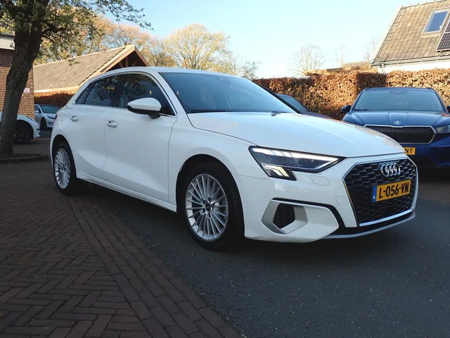 Zeer nette, origineel Nederlands, van de eerste zakelijke eigenaar Audi A3 Sportback 30 TFSI Advanced edition met vele opties! ZUINIGE 1.5 TFSI BENZINEMOTOR MET 110 KW / 150 PK EN 250 NM KOPPEL! 6-VERSNELLINGSBAK HANDGESCHAKELD! EURO 6! ADVANCED EDITION UITVOERING! Bouwjaar: 9-2021. Kenteken: L-056-VN. 158.309 km origineel, met NAP-AUTOPAS/RDW TELLERRAPPORT! APK: 08-2027. (Nieuw bij aflevering). !! NOOIT IN GEROOKT EN SCHADEVRIJ !! !! ALLE ORIGINEEL GELEVERDE SLEUTELS AANWEZIG !! AUDI IBIS WHITE. AUDI DONKERGRIJS STOFFEN COMFORTINTERIEUR. Stuurbekrachtiging, snelheidsafhankelijk. Voorwielaandrijving. Lederen multifunctie-sportstuurwiel. Centrale vergrendeling "Keyless-Go". Zelfdimmende veiligheidsbinnenspiegel. Buitenspiegels, elektr. verstelbaar, apart verwarmbaar. Elektronische wegrijblokkering. Elektrische extra luchtverwarming. Start-stopsysteem met terugwinning. Navigatie-apparaat. Park distance control. Ruitenwisserintervalschakeling met licht-/regensensor. 6-versnellings...