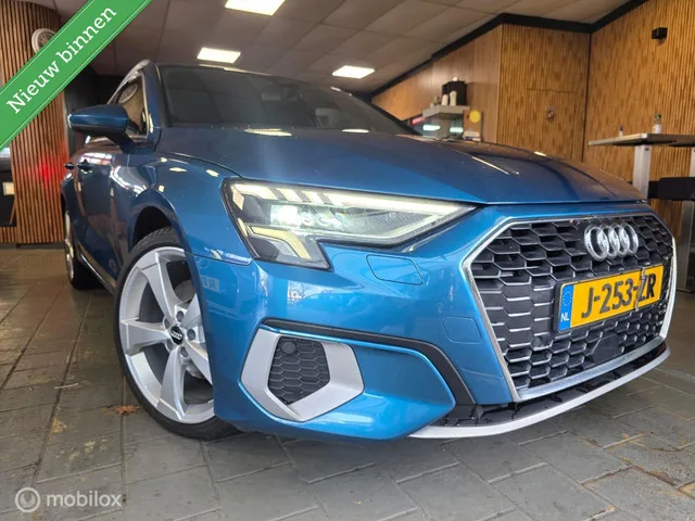 Audi A3 Sportback 30 TFSI Business Edition Incl. Afleveringsbeurt en Nieuwe APK. Kenteken: J-253-ZR; Merk: Audi; Model: A3 Sportback; APK tot: 16-11-2026; Tellerstand: 152325 KM; Carrosserievorm: Hatchback; Aantal deuren: 5; Brandstofsoort: Benzine; Bouwjaar: 2020; Transmissie: Handgeschakeld; Kleur: blauw; Motorinhoud: 999 cc; Aantal cilinders: 3; Motorcode: DLA; Vermogen: 81 kW / 110pk; Ledig gewicht: 1195 kg; Max. trekgewicht: 1300 kg; Aantal zitplaatsen: 5; Verbruik: 4.7 l/100 km; BTW/Marge: Marge, de BTW is niet aftrekbaar; Lengte: 434 cm; Breedte: 182 cm; Motorrijtuigenbelasting: € 172 - 188 per kwartaal; Emissieklasse: Euro 6. Pakket: LED lichtpakket. Koplampreiniging; Matrix LED koplampen. Pakket: Parkeer pakket. Parkeer assistent; Parkeersensor voor. Comfort. Cruise control; Regensensor. Exterieur. Alle onze auto's zijn voor de verkoop helemaal nagelopen en rijklaar gemaakt; Aluminium delen exterieur; Auto's worden afgeleverd geheel gereinigd zowel interieur als exterieur...