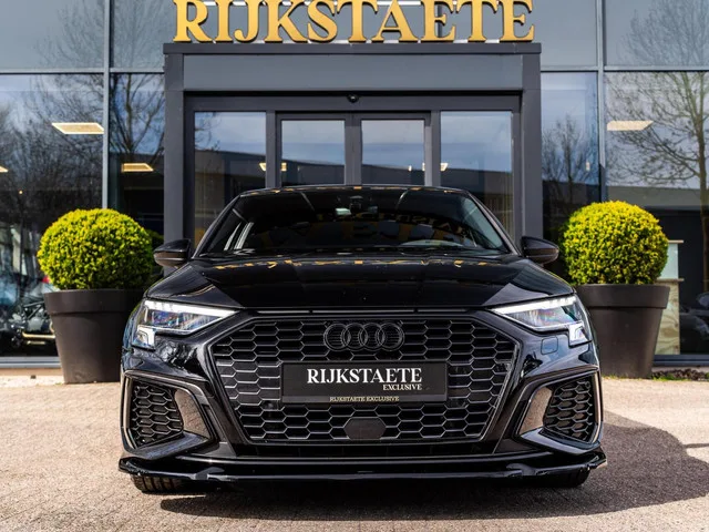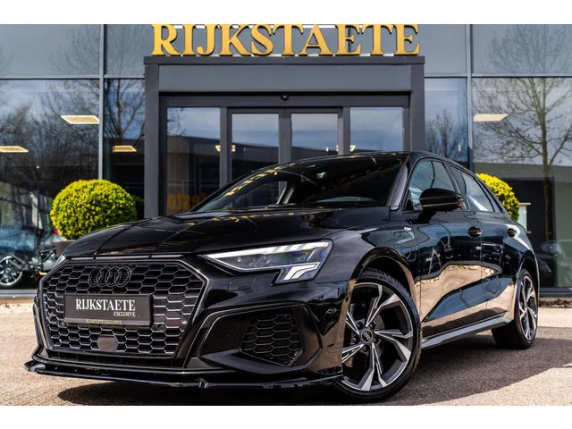 Audi A3 Sportback 40 TFSI e S-Line|MAXTON|B&O|ACC|MATRIX|18’. Merk: Audi; Model: A3 Sportback; APK tot: 31-10-2027; Tellerstand: 71702 KM; Carrosserievorm: Hatchback; Aantal deuren: 5; Brandstofsoort: Hybride (Elektrisch/Benzine); Accucapaciteit: 13 kWh; Bouwjaar: 2022; Transmissie: Automaat; Kleur: zwart Metallic; Bekleding: Leder/Stof; Kleur interieur: zwart; Motorinhoud: 1395 cc; Aantal cilinders: 4; Motorcode: DGE; Vermogen: 150 kW / 204pk; Ledig gewicht: 1525 kg; Max. trekgewicht: 1400 kg; Aantal zitplaatsen: 5; Verbruik: 1.4 l/100 km; BTW/Marge: Marge, de BTW is niet aftrekbaar; Breedte: 182 cm; Aantal sleutels: 2; Onderhoudshistorie aanwezig: Dealer onderhouden; Motorrijtuigenbelasting: € 253 - 276 per kwartaal; Emissieklasse: Euro 6. Pakket: LED lichtpakket. Koplampreiniging; Matrix LED koplampen. Pakket: Parkeer pakket. Parkeer assistent; Parkeersensor voor. Comfort. Cruise control; Regensensor. Exterieur. Achterruitwisser; Achterspoiler; Aluminium delen exterieur; Black...