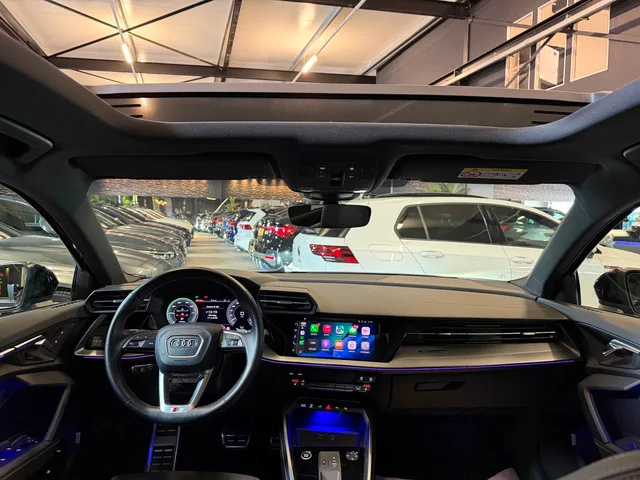 Sportieve Audi A3 35TFSI S-Line Competition. Voorzien van: Panorama|Stoelverwarming|Sfeerverlichting|Memory|B&O|Camera|ACC|RS seats|Blind spot|Keyless|Matrix Led & vele meer! Plug-in hybride; 6 versn., Automaat; Voorwielaandrijving; Bandenmaat: 225/45 R17; 110 kW; 4 cilinders; 1.395cc; Gewicht: 1.560kg; Laadvermogen: 515kg; GVW: 2.075kg; Max. trekgewicht: 1.400kg; LxBxH: 434x182x145cm; Wielbasis: 263cm; Accu: 13kWh; Accu laden: Type 2, 1-fase, 2.9 kW; 0-100 km/h: 6,8s; Topsnelheid: 232km/u; 5 zitplaatsen; 1,4 l/100km; 20,634920634921 kWh/100km; 34 g/km CO₂; Euro 6; APK: tot sep. 2026; Wegenbelasting: € 280-€ 306p/kwrt; vanaf € 600 p/m (informeer naar de mogelijkheden en voorwaarden); GNX-16-T