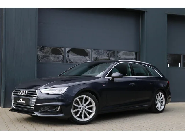 Audi A4 Avant 2.0 TFSI 190PK 3x S-LINE Virtual Cockpit AdaptiveCruise Trekhaak Sportzetels Ecc Lmv Pdc 146000KM BJ2017. Kenteken: PK-497-F; Merk: Audi; Model: A4 Avant; APK tot: 05-12-2026; Tellerstand: 146124 KM; Carrosserievorm: Station; Aantal deuren: 5; Brandstofsoort: Benzine; Bouwjaar: 2017; Transmissie: Automaat; Kleur: blauw Metallic; Bekleding: Leder/Alcantara; Kleur interieur: zwart; Motorinhoud: 1984 cc; Aantal cilinders: 4; Motorcode: CVK; Vermogen: 140 kW / 191pk; Ledig gewicht: 1435 kg; Max. trekgewicht: 1500 kg; Aantal zitplaatsen: 5; Verbruik: 5.4 l/100 km; BTW/Marge: Marge, de BTW is niet aftrekbaar; Lengte: 473 cm; Breedte: 184 cm; Aantal sleutels: 2; Onderhoudshistorie aanwezig: Dealer onderhouden; Motorrijtuigenbelasting: € 226 - 247 per kwartaal; Emissieklasse: Euro 6. Pakket: Tour pakket. Bots waarschuwing systeem; Cruise control adaptief met Stop&Go; File assistent; Rijstrooksensor met correctie; Verkeersbord detectie. Comfort. Boordcomputer; Cruise control. ...
