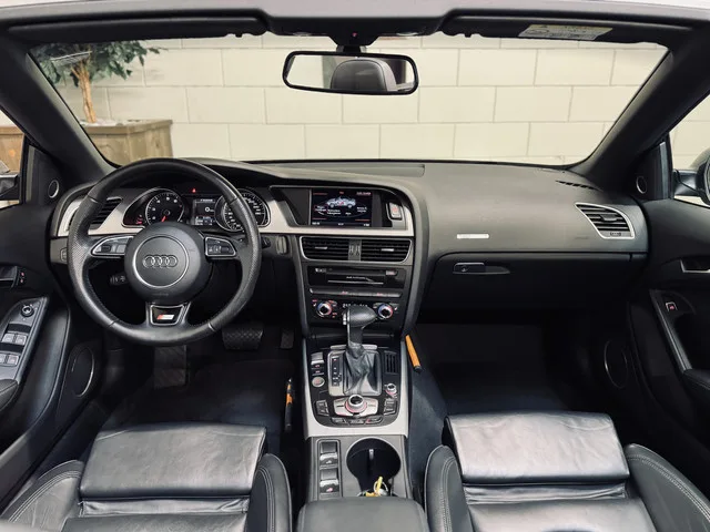 Hele fraaie en uitstekend onderhouden Audi A5 Cabriolet, uitgevoerd met een S-Line exterieur en -interieur. Voorzien van o.a. Valcona leder, elektrisch verstelbare stoelen, stoel- en nekverwarming, Bang & Olufsen audio, navigatie, bi-xenon koplampen, 19" lichtmetalen velgen, etc. Origineel Nederlands geleverd en volledig aantoonbaar onderhouden. Optionele afleverpakketen: AutoStock Plus: € 695,- incl. 6 maanden uitgebreide garantie. AutoStock Premium: € 995,- incl. 6 maanden uitgebreide garantie, nieuwe APK en onderhoud. AutoStock Premium+: € 1.595,- incl. 12 maanden uitgebreide garantie, nieuwe APK en onderhoud. AutoStock Zorgeloos: € 2.295,- incl. 24 maanden uitgebreide garantie, nieuwe APK en onderhoud. Glascoating: vanaf € 995,-. Trekhaak, vast: vanaf € 800,-. Trekhaak, afneembaar: vanaf € 950,-. Privacyglas: vanaf € 350,-. 7 versn., Automaat; Modeljaar: 2014; Voorwielaandrijving; 125 kW; 320 Nm; 4 cilinders; 1.798cc; Gewicht: 1.630kg; Laadvermogen: 525kg; GVW: 2.155kg; Max....