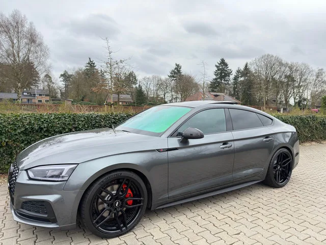 Zeer Dikke en Bom Volle , Sportieve Audi A5 Sportback 2.0 TFSI MHEV Sport S-line Edition , ABT 320PK , Automaat , Panodak / Schakelbare Uitlaat / Led / 20" Lm Velgen. 20" ABT Breedset Velgen. Schakelbare Uitlaat op Afstandbediening. Gechipt naar 320 PK Uitdraai Aanwezig !! **Audi A5 Sportback 2.0 TFSI MHEV Sport S-line Edition**. **Kenteken:** TH423P. Maak kennis met deze prachtige Audi A5 Sportback S-line Edition uit 2018. Een perfecte combinatie van sportiviteit en elegantie. Het stijlvolle grijze exterieur, gecombineerd met lederen bekleding en een elektrisch glazen panoramadak, zorgt ervoor dat deze A5 niet alleen indrukwekkend rijdt, maar ook uitermate fraai oogt. Met een krachtige 2.0 TFSI motor met mild hybrid technologie, brengt hij 185 kW (252 pk) vermogen, een topsnelheid van 250 km/u en een acceleratie van 0 naar 100 in slechts 6,5 seconden. Deze hatchback biedt alles wat je van een premium auto mag verwachten: een volledig digitaal instrumentenpaneel, matrix LED...