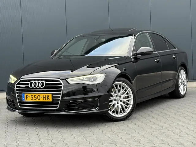 Audi A6 3.0 TFSI Quattro Sport Edition Schuifdak - Leder - Xenon - Facelift. Kenteken: P-550-HK; Merk: Audi; Model: A6 Limousine; APK tot: 29-08-2026; Tellerstand: 189853 KM; Carrosserievorm: Sedan; Aantal deuren: 4; Brandstofsoort: Benzine; Bouwjaar: 2016; Transmissie: Automaat; Kleur: zwart Metallic; Bekleding: Leder; Kleur interieur: bruin; Motorinhoud: 2995 cc; Aantal cilinders: 6; Vermogen: 245 kW / 334pk; Ledig gewicht: 1855 kg; Aantal zitplaatsen: 5; Verbruik: 7.4 l/100 km; BTW/Marge: Marge, de BTW is niet aftrekbaar; Aantal sleutels: 2; Motorrijtuigenbelasting: € 360 - 394 per kwartaal; Emissieklasse: Euro 6. Comfort. Boordcomputer; Cruise control; Regensensor. Exterieur. Bi-xenon koplampen; Buitenspiegel rechts; Buitenspiegels elektrisch inklapbaar; Buitenspiegels elektrisch verstel- en verwarmbaar; Buitenspiegels elektrisch verstelbaar; Centrale vergrendeling met afstandsbediening; Dimlichten automatisch; Elektrisch glazen schuif-/kanteldak; Extra getint glas achter...