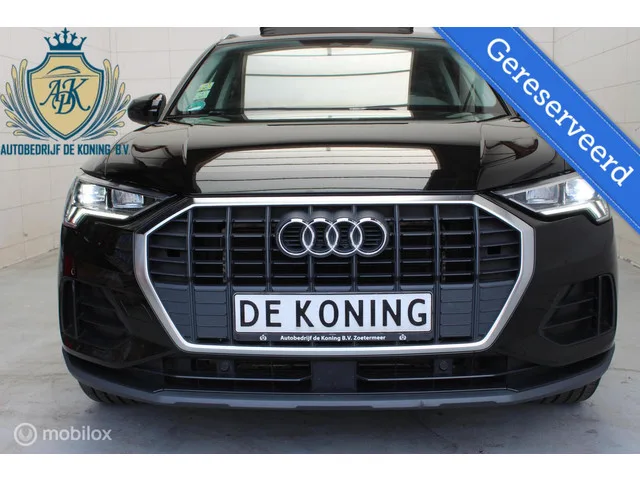Audi Q3 35 TFSI Pro Line PANO MATRIX CAMERA CARPLAY. Kenteken: HZZ-32-F; Merk: Audi; Model: Q3; Tellerstand: 103000 KM; Carrosserievorm: SUV; Aantal deuren: 5; Brandstofsoort: Benzine; Bouwjaar: 2020; Transmissie: Automaat; Kleur: zwart; Bekleding: Stof; Kleur interieur: grijs; Motorinhoud: 1498 cc; Aantal cilinders: 4; Vermogen: 110 kW / 150pk; Ledig gewicht: 1505 kg; Aantal zitplaatsen: 5; Verbruik: 5.9 l/100 km; BTW/Marge: BTW aftrekbaar, de prijs is inclusief BTW; Aantal sleutels: 2; Onderhoudshistorie aanwezig: Dealer onderhouden; Motorrijtuigenbelasting: € 253 - 276 per kwartaal. Pakket: Assistentie Pakket. Bots waarschuwing systeem; Cruise control adaptief; Dodehoek detectie; File assistent; Verkeersbord detectie. Pakket: Keyless pakket. Elektrisch bedienbare achterklep met sensorsturing; Keyless entry; Keyless start. Pakket: LED lichtpakket. Koplampen adaptief; Matrix LED koplampen. Pakket: Parkeer pakket. Parkeersensor voor. Comfort. Cruise control; Regensensor. Exterieur. ...