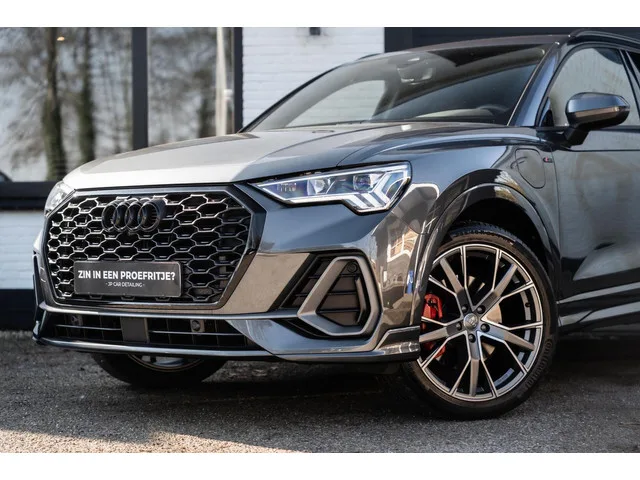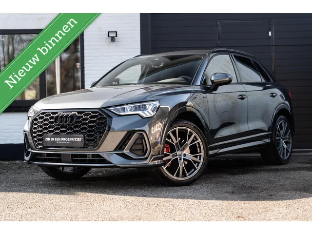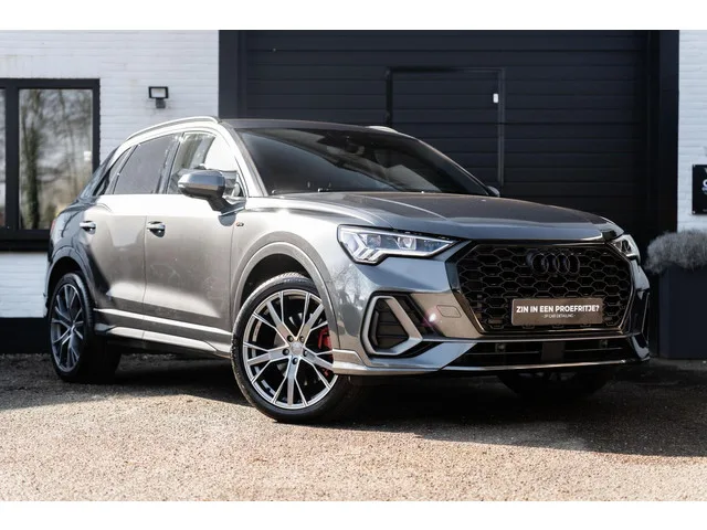 In nieuwstaat verkerende Audi Q3 45 TFSI E S-Line Met 360 graden camera, elec stoelen met memory, Ambient verlichting, Carplay. Audi Q3 45 TFSI e S edition 360 Elec Stoelen Ambient 20''. Kenteken: T-607-KP; Merk: Audi; Model: Q3; APK tot: 25-06-2027; Tellerstand: 29988 KM; Carrosserievorm: SUV; Aantal deuren: 5; Brandstofsoort: Hybride (Elektrisch/Benzine); Accucapaciteit: 13 kWh; Bouwjaar: 2021; Transmissie: Automaat; Kleur: grijs; Kleurnaam: Daytona Grijs; Bekleding: Leder/Stof; Interieurnaam: S-line; Motorinhoud: 1395 cc; Aantal cilinders: 4; Motorcode: DGE; Vermogen: 180 kW / 245pk; Ledig gewicht: 1715 kg; Max. trekgewicht: 1400 kg; Aantal zitplaatsen: 5; Verbruik: 1.6 l/100 km; BTW/Marge: Marge, de BTW is niet aftrekbaar; Aantal sleutels: 2; Onderhoudshistorie aanwezig: Dealer onderhouden; Motorrijtuigenbelasting: € 307 - 335 per kwartaal; Emissieklasse: Euro 6. Pakket: Assistentie Pakket. Actieve noodgeval assistent; Cruise control adaptief; Cruise control adaptief met Stop&Go...