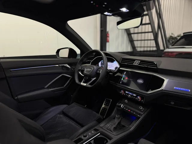 Hartelijk bedankt voor uw interesse in onze, Audi Q3 45 TFSI quattro S Line edition one|Pano|B&O|Keyless|. Kenteken: JBK-61-R; Merk: Audi; Model: Q3; APK tot: 20-08-2027; Tellerstand: 64380 KM; Carrosserievorm: SUV; Aantal deuren: 5; Brandstofsoort: Benzine; Bouwjaar: 2019; Transmissie: Automaat; Kleur: zwart; Bekleding: Leder/Alcantara; Kleur interieur: zwart; Motorinhoud: 1984 cc; Aantal cilinders: 4; Motorcode: DKT; Vermogen: 169 kW / 230pk; Ledig gewicht: 1595 kg; Max. trekgewicht: 2100 kg; Aantal zitplaatsen: 5; Verbruik: 7.4 l/100 km; BTW/Marge: Marge, de BTW is niet aftrekbaar; Lengte: 448 cm; Breedte: 185 cm; Aantal sleutels: 2; Motorrijtuigenbelasting: € 280 - 306 per kwartaal; Emissieklasse: Euro 6. Pakket: Keyless pakket. Elektrisch bedienbare achterklep met sensorsturing; Keyless entry; Keyless start. Pakket: S Line interieur. Aluminium interieur afwerking; Lederen/stof bekleding; Sportstoelen; Sportstuur leder. Pakket: Assistentie Pakket. Autonomous Emergency Braking...