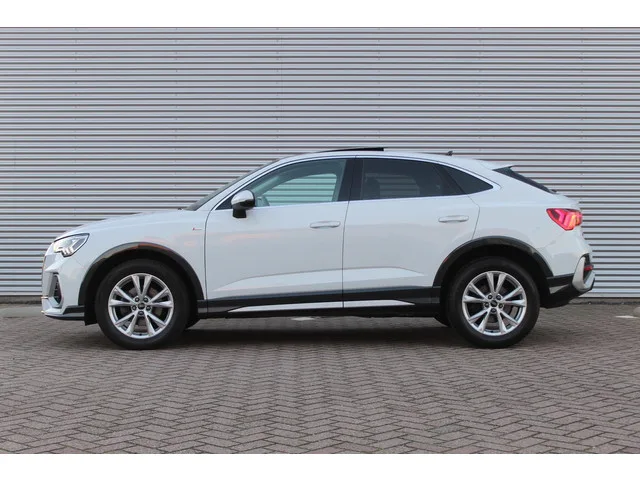 Audi Q3 35 TFSI S-Line exterieur/Led/Stoelverw/Carplay. Kenteken: JFH-76-T; Merk: Audi; Model: Q3 Sportback; APK tot: 01-02-2028; Tellerstand: 69349 KM; Carrosserievorm: SUV; Aantal deuren: 5; Brandstofsoort: Benzine; Bouwjaar: 2024; Transmissie: Automaat; Kleur: wit Metallic; Bekleding: Leder; Kleur interieur: zwart; Motorinhoud: 1498 cc; Aantal cilinders: 4; Motorcode: DXD; Vermogen: 110 kW / 150pk; Ledig gewicht: 1470 kg; Max. trekgewicht: 1800 kg; Aantal zitplaatsen: 5; Verbruik: 6.5 l/100 km; BTW/Marge: BTW aftrekbaar, de prijs is inclusief BTW; Lengte: 451 cm; Breedte: 185 cm; Aantal sleutels: 2; Onderhoudshistorie aanwezig: ; Motorrijtuigenbelasting: € 253 - 276 per kwartaal; Emissieklasse: Euro 6. Comfort. Cruise control; Regensensor. Exterieur. Achterruitwisser; Aluminium delen exterieur; Buitenspiegels elektrisch verstel- en verwarmbaar; Buitenspiegels in carrosseriekleur; Centrale vergrendeling met afstandsbediening; Dimlichten automatisch; Elektrisch glazen schuifdak...