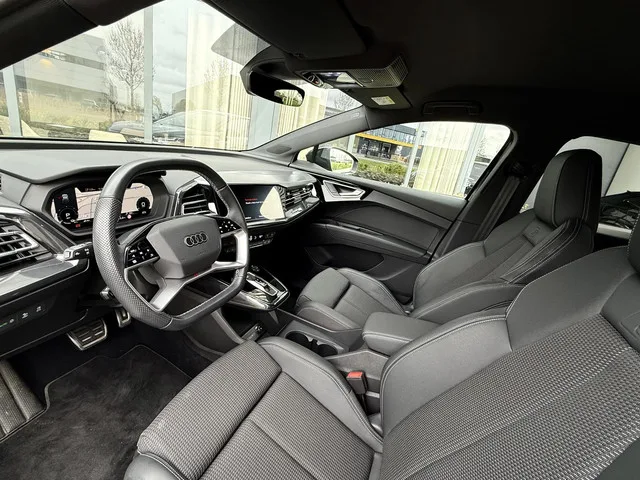 In absolute nieuwstaat verkerende Audi Q4 Sportback, S-Line uitvoering met zwart  optiek pakket. Auto is verder voorzien van o.a. LED koplampen en - achterlichten, parkeersensoren voor + achter, elektr. bedienbare achterklep, 3 zone climate control met bedieningspaneel voor achter passagiers, stoelverwarming, stuurwielverwarming, MMI multifunctioneel touchscreen, S line exterieur pakket, S line interieur pakket, privacy glas achter, hoogglans zwarte S line velgen, hoogglans zwarte Audi logo’s, etc. etc. Auto heeft een uniek lage km. stand; slechts 10.868! Audi accu garantie tot 08-2023 of 160.000 km. Wij hanteren geen afleverkosten; prijs is rijklaar inclusief 1 jaar algehele Audi garantie. SOH 92,4%!!! Al onze occasions zijn voorzien van de gehele onderhoud historie en voorzien van een Nationale Auto Pas. Inruil is mogelijk. Wij zijn dagelijks op afspraak geopend van 09:00 uur tot 18:00 uur en zaterdag van 10:00 uur tot 16:00 uur. Wij zijn telefonisch te bereiken op...