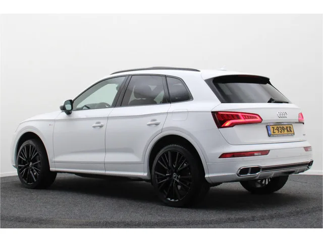 Van uw nieuwe auto verlangt u rijplezier, maar ook optimaal comfort en veiligheid. Daarom is de Audi Q5 de auto die u zoekt. De S-Line styling geeft dit model een elegante en opvallende uitstraling. Het zal niet lang meer duren totdat benzinerijden uit de tijd is. Maar voor nu is dit de beste oplossing: een combi van elektrisch en brandstof, met een hybride motor. Het stijlvolle lederen interieur geeft deze Audi Q5 net dat beetje extra. Voorin is het 's winters genieten met de verwarmbare voorstoelen voor zowel bestuurder als bijrijder. De sportstoelen geven het interieur een super strakke look. Het interieur baadt in een zee van licht met het elektrische bediende glazen panoramadak. De elektrische achterklep opent met een druk op de knop, zodat u gemakkelijk toegang heeft tot de bagageruimte. Bij de uitrusting van deze Audi horen onder meer 21 inch lichtmetalen velgen, LED koplampen, warmtewerend glas, dynamisch onderstel, zwarte hemelbekleding en aluminium dakrailing. Het...
