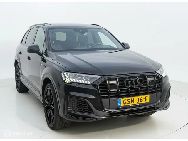 Audi Q7 60 TFSI e quattro Competition PANO|360|BOSE|LEDER|MATRIX. Merk: Audi; Model: Q7; APK tot: 02-04-2027; Tellerstand: 95600 KM; Carrosserievorm: SUV; Aantal deuren: 5; Brandstofsoort: Hybride (Elektrisch/Benzine); Accucapaciteit: 14 kWh; Bouwjaar: 2020; Transmissie: Automaat; Kleur: zwart; Bekleding: Leder; Kleur interieur: zwart; Motorinhoud: 2995 cc; Aantal cilinders: 6; Vermogen: 335 kW / 456pk; Ledig gewicht: 2055 kg; Aantal zitplaatsen: 5; Verbruik: 3.2 l/100 km; BTW/Marge: Marge, de BTW is niet aftrekbaar; Aantal sleutels: 2; Onderhoudshistorie aanwezig: Ja. Comfort. Cruise control; Regensensor. Exterieur. Buitenspiegels elektrisch inklapbaar; Buitenspiegels elektrisch verstel- en verwarmbaar; Buitenspiegels elektrisch verstelbaar; Centrale vergrendeling; Centrale vergrendeling met afstandsbediening; Dakspoiler; Dimlichten automatisch; Elektrisch bedienbare achterklep; Elektrisch glazen panorama-dak; Extra getint glas achter; Getint glas; Glazen schuifdak; Keyless entry...