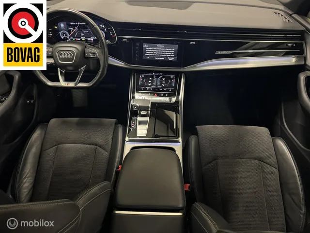 Ruime en sportieve Q7 60 TFSI met 456 PK, onderhoudshistorie, prachtige 22 inch wielen, 2 sleutels etc. Audi Q7 60 TFSI Quattro S-Line | 22 inch | Trekhaak | 456PK. Kenteken: JKJ-17-S; Merk: Audi; Model: Q7; APK tot: 28-08-2026; Tellerstand: 133159 KM; Carrosserievorm: SUV; Aantal deuren: 5; Brandstofsoort: Hybride (Elektrisch/Benzine); Bouwjaar: 2020; Transmissie: Automaat; Kleur: zwart; Bekleding: Leder/Stof; Kleur interieur: zwart; Motorinhoud: 2995 cc; Aantal cilinders: 6; Motorcode: DCB; Vermogen: 250 kW / 341pk; Ledig gewicht: 2435 kg; Max. trekgewicht: 3500 kg; Aantal zitplaatsen: 5; Verbruik: 3.2 l/100 km; BTW/Marge: Marge, de BTW is niet aftrekbaar; Aantal sleutels: 2; Onderhoudshistorie aanwezig: Dealer onderhouden; Motorrijtuigenbelasting: € 495 - 541 per kwartaal; Emissieklasse: Euro 6. Comfort. Cruise control; Regensensor. Exterieur. Achterruitwisser; Buitenspiegels elektrisch inklapbaar; Buitenspiegels elektrisch verstel- en verwarmbaar; Centrale vergrendeling met...