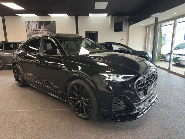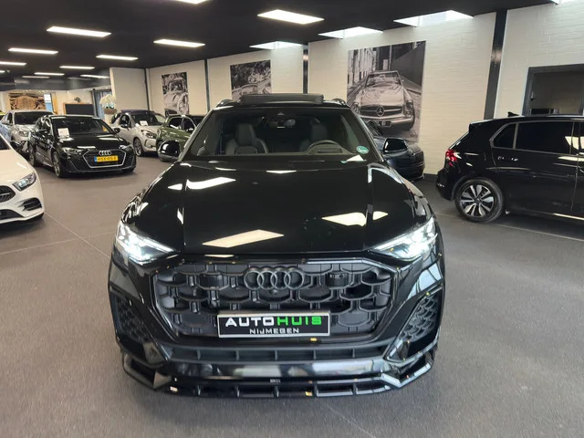 Audi Q8 60 TFSI e quattro 3.0 TFSI e quattro 489 PK Pano B&O Laser HUD ACC 23" Trekhaak. Zeer complete en luxe uitgevoerde Audi Q8 60 TFSI e quattro uit 2024. Deze plug-in hybride SUV combineert een krachtige 3.0 V6 TFSI motor met een elektromotor voor een systeemvermogen van 360 kW (489 pk). Dankzij de quattro vierwielaandrijving, adaptive air suspension en uitgebreide rijassistentiesystemen biedt deze Q8 een perfecte balans tussen prestaties, comfort en efficiëntie. De auto is uitgevoerd in de stijlvolle kleur Mythos Black Metallic en beschikt over een zeer rijke fabrieksuitrusting met onder andere S Sportstoelen Plus, Bang & Olufsen sound system, Matrix LED koplampen met laserlicht en een panoramadak. Belangrijkste specificaties. Bouwjaar: 2024. Motor: 3.0 V6 TFSI Plug-in Hybride. Vermogen: 360 kW / 489 pk. Transmissie: Automaat (8-traps Tiptronic). Aandrijving: quattro vierwielaandrijving. Wielbasis: 2998 mm. Emissienorm: Euro 6e. Exterieur. Mythos Black Metallic lak. ...