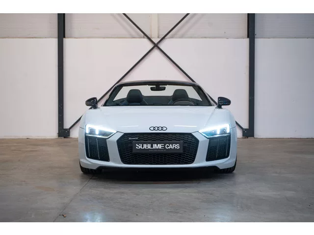 Beschikbaar bij Sublime Cars: Audi R8 V10 Spyder uitgevoerd in een unieke kleur – Sazuka Grijs. Dit betreft voor velen de "ultieme" versie van de Audi R8 met de NA V10 motor zonder OPF-filter. Dat betekent diep, rauw 10-cillinder geluid. En dat in een moderne supercar / spyder. Zowel de looks als de rijbeleving van deze auto zijn van een ander niveau. Deze Audi R8 Spyder is écht alleen weggelegd voor de liefhebber. De auto verkeert in verzamelaarstoestand: de sazukagrijze carrosserie verkeert in een uitmuntende conditie, en rondom is de auto o.a. voorzien van nieuwe Pirelli P-Zero banden. Betreft een BTW-auto, dus BTW-verrekenbaar bij aankoop. - BTW-auto. - Exterieurkleur: Suzuka Gray. - Sportuitlaat met bedienbaar kleppensysteem. - Bang & Olufsen Soundsystem. - Leder Fijnnappa met geruit stiksel voor sportstoelen. - Elektrisch verstelbare stoelen. - Virtual Cockpit & MMI+. - 20" Spyder Design velgen met nieuwe Pirelli P-Zero banden. - Exterieurpakket hoogglans zwart. - Alarm...