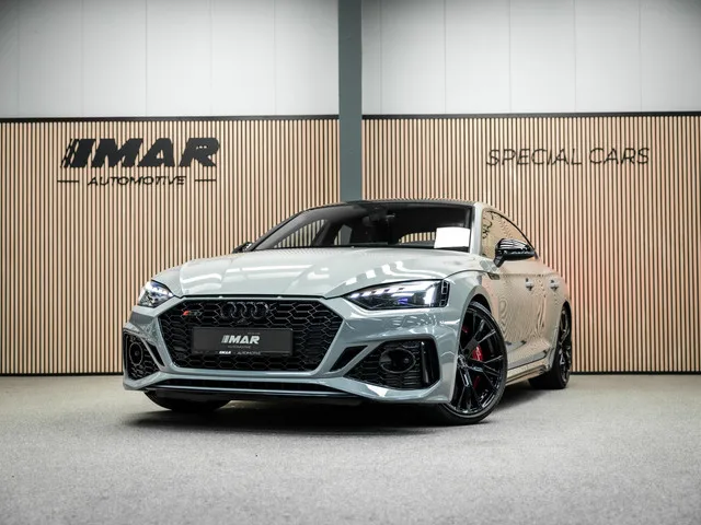 Audi RS5 Sportback 2.9 TFSI quattro. Een uitgesproken sportieve en stijlvolle performance Audi met brute kracht en dagelijks gebruiksgemak. Deze Audi RS5 Sportback combineert dynamiek, luxe en ruimte. De 2.9 TFSI V6 biturbo levert 450 pk en staat garant voor indrukwekkende prestaties en een karaktervolle rijbeleving. Dankzij quattro vierwielaandrijving en de automatische transmissie sprint deze RS5 in slechts 3,9 seconden naar 100 km/h, met een topsnelheid van 250 km/h. Strak, snel en tegelijkertijd comfortabel. Deze uitvoering is uitgevoerd in het geliefde Nardo Grey en heeft een sportief en strak voorkomen. Binnenin zet de zwarte afwerking met rode stiksels de toon, met onder andere een Alcantara stuurwiel, stoelmassage en stoelverwarming voor- en achter. De 360 graden camera zorgt voor extra gemak en overzicht. Hoewel alle gegevens met de grootst mogelijke zorgvuldigheid zijn samengesteld is Mar-Automotive niet aansprakelijk voor verkeerde opties of fouten in de advertentie....