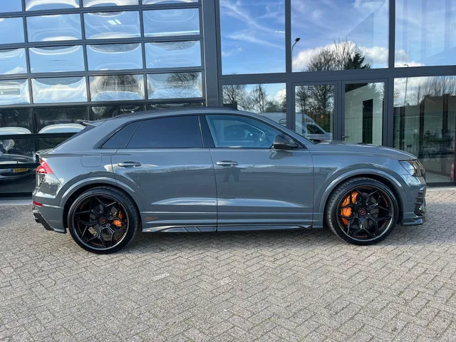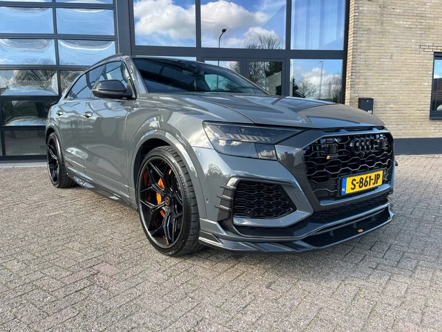 Unieke Audi RS Q8 in de exclusieve Lamborghinikleur Grigio Telesto . Deze auto is voorzien van een volledig Urban Carbon pakket. Graper downpipes met 200 cell racecats, JD engeneering stage 2, de auto heeft ongeveer 750 pk. Zeer exclusieve 24 inch incurve Custom wheels met Carbon. Oranje remklauwen. De auto is voorzien van ppf folie en een keramische coating. Kortom een zeer mooie en exclusief uitgevoerde auto, zoals je hem nergens anders vindt. De prijs is 169950 euro inclusief btw. Inruilen is uiteraard mogelijk. Voor meer info bel met Ronald van der Klij. 06 45 474156. 4WD; 441 kW; 8 cilinders; 3.996cc; Gewicht: 2.290kg; Laadvermogen: 725kg; GVW: 3.015kg; Max. trekgewicht: 3.500kg; Wielbasis: 299cm; 0-100 km/h: 3,8s; Topsnelheid: 250km/u; Interieurkleur: zwart; 5 zitplaatsen; 12,3 l/100km; 281 g/km CO₂; Energielabel E; Euro 6; Dealer onderhouden (onderhoudsboekjes aanwezig); APK: tot mei 2026; 2 sleutels; Wegenbelasting: € 468-€ 512p/kwrt; vanaf € 2.450 p/m (informeer naar de...