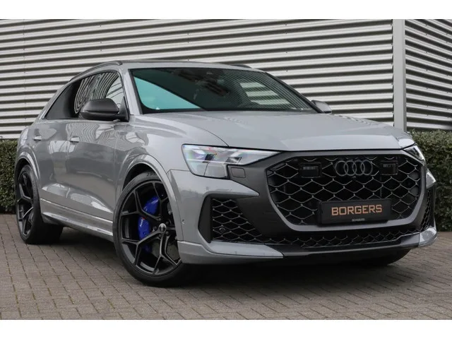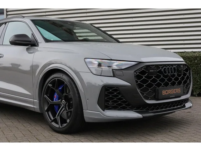Borgers heeft weer een speciale Audi RSQ8 Performance beschikbaar! Het betreft een RSQ8 Performance met 640 PK in het Nardogrijs (Audi Exclusive) en zeer compleet uitgevoerd met o.a.: 23 inch lichtmetalen Audi Sport velgen in 5-Y-spaak-design (contrast zwart); Akoestisch glas in de portier- en zijramen; Ambiente verlichting plus (in meerdere kleuren instelbaar); Assistentiepakket City (o.a.: side assist met uitstapwaarschuwing); Assistentiepakket Parking (o.a. parkeerassistent inclusief parkeersensoren, topview 360 graden camerasysteem); Assistentiepakket Tour (o.a.: adaptive cruise control met stop- & Go-functie, lane assist, verkeersbordenherkenning); Audi connect key; Audi drive select (instelbaarheid van het rijgedrag); Audi phone box met wirelles charging; Audi pre sense rear-pakket (o.a. zij-airbags achter); Audi smartphone interface (o.a.: Apple Carplay); Audi virtual cockpit plus met RS-layout; Bagagerails met vastzetsysteem; Bang & Olufsen Advanced Sound System met 3D-sound...