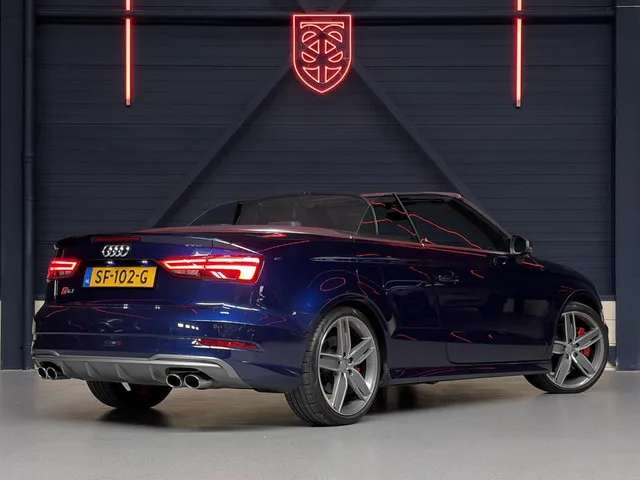 Audi S3 TFSI Quattro Pro Line Plus |APP|B&O|CAM.|STOELVERW.|19". Merk: Audi; Model: S3; Tellerstand: 96521 KM; Carrosserievorm: Cabrio; Aantal deuren: 2; Brandstofsoort: Benzine; Bouwjaar: 2017; Transmissie: Automaat 7-traps; Kleur: blauw Metallic; Kleurnaam: Navarrablauw; Bekleding: Leder/Alcantara; Kleur interieur: zwart; Interieurnaam: S-Line; Motorinhoud: 1984 cc; Aantal cilinders: 4; Motorcode: DJH; Vermogen: 228 kW / 311pk; Ledig gewicht: 1610 kg; Aantal zitplaatsen: 5; Verbruik: 6.8 l/100 km; BTW/Marge: Marge, de BTW is niet aftrekbaar; Aantal sleutels: 2; Motorrijtuigenbelasting: € 280 - 306 per kwartaal; Emissieklasse: Euro 6. Bijzondere opties & accessoires. Achteruitrijcamera; Apple Car Play | Android Auto; Bang & Olufsen; Buitenspiegels elektrisch verstel- en verwarmbaar; LED-koplampen; Lichtmetalen velgen 19"; Microvezel bekleding; Parkeersensor voor en achter; Premium kleur; Schakelpaddles; Smartphone integratie; Sportonderstel; Sportstoelen; Sportstuur; Sportvelgen...