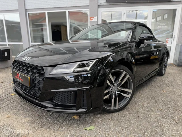 In nieuwstaat. Audi TT Roadster 40 TFSI Pro Line S Competition. Kenteken: L-219-KT; Merk: Audi; Model: TT Roadster; APK tot: 16-05-2026; Tellerstand: 28149 KM; Carrosserievorm: Cabrio; Aantal deuren: 2; Brandstofsoort: Benzine; Bouwjaar: 2019; Transmissie: Automaat; Kleur: zwart Metallic; Bekleding: Leder; Kleur interieur: bruin; Motorinhoud: 1984 cc; Aantal cilinders: 4; Motorcode: DKZ; Vermogen: 145 kW / 197pk; Ledig gewicht: 1335 kg; Aantal zitplaatsen: 2; Verbruik: 6.3 l/100 km; BTW/Marge: Marge, de BTW is niet aftrekbaar; Aantal sleutels: 2; Onderhoudshistorie aanwezig: Dealer onderhouden; Motorrijtuigenbelasting: € 199 - 217 per kwartaal; Emissieklasse: Euro 6. Pakket: LED verlichting pakket. Koplampen adaptief; Koplampreiniging; LED achterlichten; LED dagrijverlichting; LED koplampen. Comfort. Cruise control; Regensensor. Exterieur. Achterspoiler; Adaptief demping systeem; Bi-xenon koplampen; Buitensp.elektr.inklap en aut. dimmend; Buitenspiegels elektrisch verstel- en...