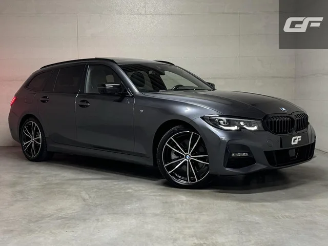 BMW 3-Serie 320e Touring M-Sport Pano ACC 360 CarPlay Trekh. Kenteken: GVV-06-G; Merk: BMW; Model: 3-serie Touring; APK tot: 03-07-2027; Tellerstand: 107319 KM; Carrosserievorm: Station; Aantal deuren: 5; Brandstofsoort: Hybride (Elektrisch/Benzine); Bouwjaar: 2021; Transmissie: Automaat; Kleur: grijs; Kleurnaam: Mineralgrijs; Bekleding: Leder/Alcantara; Kleur interieur: zwart; Motorinhoud: 1998 cc; Aantal cilinders: 4; Vermogen: 150 kW / 204pk; Ledig gewicht: 1800 kg; Aantal zitplaatsen: 5; Verbruik: 1.6 l/100 km; BTW/Marge: Marge, de BTW is niet aftrekbaar; Aantal sleutels: 2; Onderhoudshistorie aanwezig: Dealer onderhouden. Pakket: Audio Media Pack. Audio installatie; Draadloze telefoonlader; WiFi. Pakket: Parking Pack. Achteruitrijcamera; Parkeer assistent. Pakket: M Sport Individual. Hemelbekleding donker; Luxe lederen bekleding; M Aerodynamica; Sportonderstel; Sportstuur leder; Zwarte glans (piano)lak interieur afwerking. Pakket: M Sport. Aluminium interieur afwerking; M...