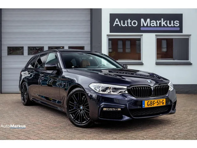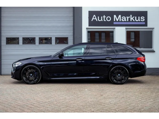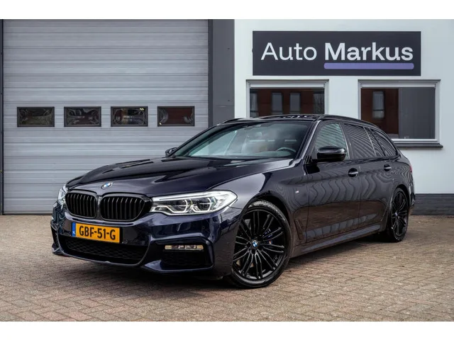 BMW 5-serie Touring 540i xDrive 3X M-Sport|Pano|Ventilatie|HUD|Comfortstoelen|Trekhaak|Adaptive LED|M Sport remmen. Kenteken: GBF-51-G; Merk: BMW; Model: 5-serie Touring; APK tot: 31-01-2027; Tellerstand: 131119 KM; Carrosserievorm: Station; Aantal deuren: 5; Brandstofsoort: Benzine; Bouwjaar: 2018; Transmissie: Automaat; Kleur: zwart; Motorinhoud: 2998 cc; Aantal cilinders: 6; Motorcode: B58B30A; Vermogen: 250 kW / 341pk; Ledig gewicht: 1740 kg; Max. trekgewicht: 2000 kg; Aantal zitplaatsen: 5; Verbruik: 7.3 l/100 km; BTW/Marge: Marge, de BTW is niet aftrekbaar; Lengte: 494 cm; Breedte: 187 cm; Hoogte: 1498 cm; Motorrijtuigenbelasting: € 307 - 335 per kwartaal; Emissieklasse: Euro 6. Comfort. Boordcomputer; Cruise control; Regensensor. Exterieur. Achterruit apart te openen; Buitenspiegels elektrisch inklapbaar; Buitenspiegels elektrisch verstel- en verwarmbaar; Centrale vergrendeling met afstandsbediening; Chroom delen exterieur; Dakrails; Dimlichten automatisch; Elektrisch...