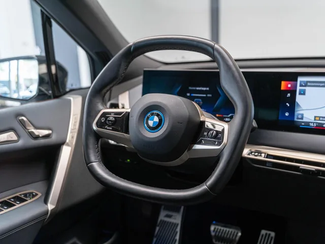 BMW iX xDrive40 High Executive 77 kWh M HuD H&K 22" Massage. Voertuignummer: ​​. Merk: BMW; Model: iX; Tellerstand: 17040 KM; Carrosserievorm: SUV; Aantal deuren: 5; Brandstofsoort: Elektrisch; Accucapaciteit: 77 kWh; Actieradius: 416 km; Bouwjaar: 2022; Transmissie: Automaat; Kleur: zwart; Bekleding: Leder; Vermogen: 240 kW / 327pk; Ledig gewicht: 2340 kg; Aantal zitplaatsen: 5; BTW/Marge: Marge, de BTW is niet aftrekbaar. Comfort. Boordcomputer; Cruise control. Exterieur. Adaptief demping systeem; Buitenspiegel(s) automatisch dimmend; Buitenspiegels elektr. met geheugen; Buitenspiegels elektrisch verstel- en verwarmbaar; Centrale vergrendeling; Centrale vergrendeling met afstandsbediening; Elektrisch bedienbare achterklep; Glazen schuifdak; LED achterlichten; LED koplampen; Lichtmetalen velgen 20"; M-pakket; Panoramadak; Parkeer assistent; Parkeersensor voor en achter; Trekhaak elektrisch uitklapbaar. Infotainment. Audio installatie; Audio installatie high end; Audio installatie...