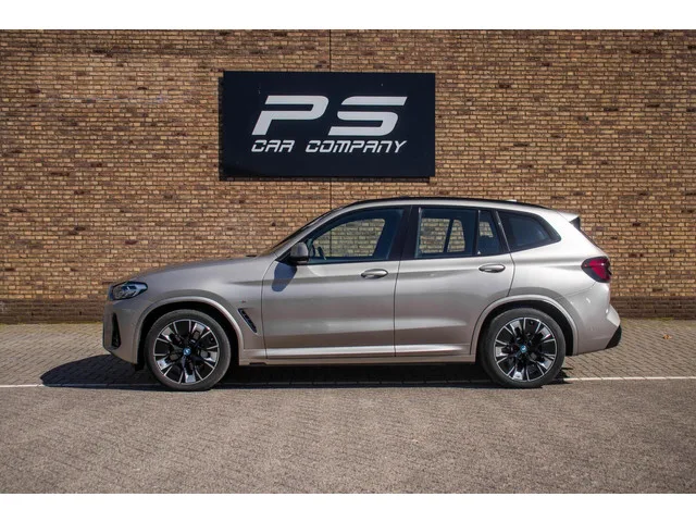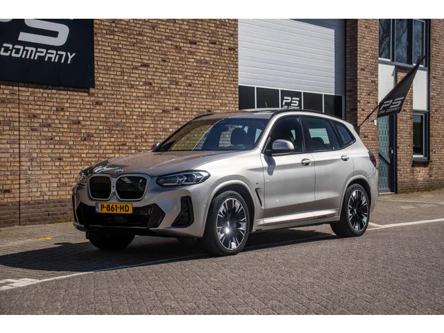 BMW iX3 Impressive 80 kWh M-Sport, Orig. NL, Pano, Leder, Ambient, Trekhaak, Memory, Head-Up, ACC, 360 Cam, Stoelverwarming, Clima. BMW iX3 Impressive 80 kWh M-Sport, Orig. NL, Pano, Leder. Kenteken: P-861-HD; Merk: BMW; Model: iX3; APK tot: 16-03-2028; Tellerstand: 34775 KM; Carrosserievorm: SUV; Aantal deuren: 5; Brandstofsoort: Elektrisch; Accucapaciteit: 80 kWh; Actieradius: 471 km; Accuconditie: 98 %; Bouwjaar: 2022; Transmissie: Automaat; Kleur: grijs; Kleurnaam: Kaschmirsilber Metallic; Bekleding: Leder; Kleur interieur: zwart; Motorcode: HA0001N0; Vermogen: 210 kW / 286pk; Ledig gewicht: 2155 kg; Max. trekgewicht: 750 kg; Aantal zitplaatsen: 5; BTW/Marge: Marge, de BTW is niet aftrekbaar; Lengte: 473 cm; Breedte: 189 cm; Hoogte: 1668 cm; Aantal sleutels: 2; Onderhoudshistorie aanwezig: Dealer onderhouden; Motorrijtuigenbelasting: € 308 - 337 per kwartaal; Emissieklasse: Euro Z; Bandenmaat voor: 245/45/20; Bandemaat achter: 275/40/20. Comfort. Boordcomputer; Regensensor. ...
