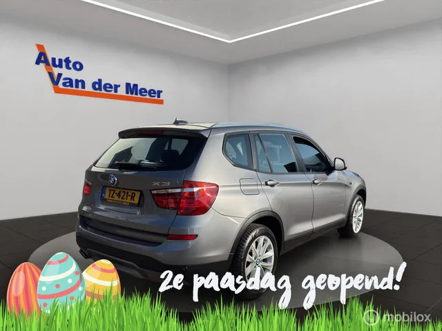 BMW X3 xDrive28i High Executive. Kenteken: TZ-421-R; Merk: BMW; Model: X3; APK tot: 24-11-2026; Tellerstand: 160539 KM; Carrosserievorm: SUV; Aantal deuren: 5; Brandstofsoort: Benzine; Bouwjaar: 2014; Transmissie: Automaat; Kleur: grijs; Motorinhoud: 1997 cc; Aantal cilinders: 4; Motorcode: N20B20A; Vermogen: 180 kW / 245pk; Ledig gewicht: 1745 kg; Max. trekgewicht: 2400 kg; Aantal zitplaatsen: 5; Verbruik: 7.3 l/100 km; BTW/Marge: Marge, de BTW is niet aftrekbaar; Lengte: 466 cm; Hoogte: 1661 cm; Aantal sleutels: 2; Motorrijtuigenbelasting: € 307 - 335 per kwartaal; Emissieklasse: Euro 6. Comfort. Cruise control; Regensensor. Exterieur. Achterruitwisser; Bi-xenon koplampen; Buitenspiegels elektrisch verstel- en verwarmbaar; Centrale vergrendeling met afstandsbediening; Dimlichten automatisch; Elektrisch bedienbare achterklep; Elektrisch glazen panorama-dak; Getint glas; Koplampreiniging; Lichtmetalen velgen 17"; Mistlampen voor; Panoramadak; Parkeersensor voor en achter...