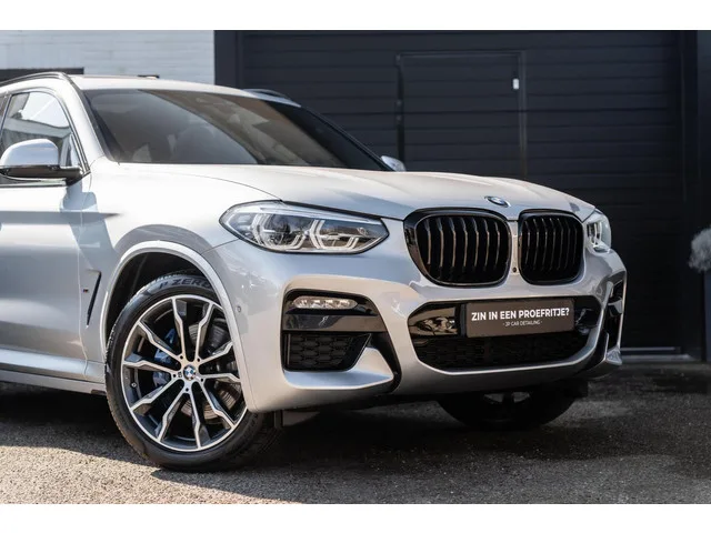 in nieuwstaat verkerende dealeronderhouden BMW X3 30E met werkelijk alle opties ! Carbon 360 Pano Memory H&K HUD. BMW X3 xDrive30e High Ex Pano 360 Memory Carbon H&K HUD. Merk: BMW; Model: X3; Tellerstand: 48900 KM; Carrosserievorm: SUV; Aantal deuren: 5; Brandstofsoort: Hybride (Elektrisch/Benzine); Accucapaciteit: 12 kWh; Bouwjaar: 2021; Transmissie: Automaat; Kleur: zilver; Kleurnaam: Glacier-silber metallic (A83) (grijs metallic); Bekleding: Leder; Kleur interieur: zwart; Interieurnaam: m sport; Motorinhoud: 1998 cc; Aantal cilinders: 4; Vermogen: 215 kW / 293pk; Ledig gewicht: 1965 kg; Aantal zitplaatsen: 5; Verbruik: 2.2 l/100 km; BTW/Marge: BTW aftrekbaar, de prijs is inclusief BTW; Aantal sleutels: 2; Onderhoudshistorie aanwezig: Dealer onderhouden. Pakket: Audio Media Pack. Audio installatie; DAB; Draadloze telefoonlader; WiFi. Pakket: CoPilot Pack. Cruise control adaptief met Stop&Go en stuurhulp; Dodehoekdetectie met correctie; Kruisend verkeer detectie; Rijstrooksensor...