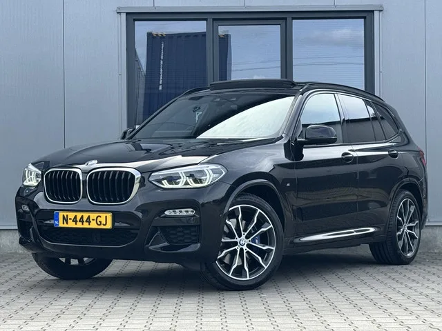 BMW X3 G01 M Sport. VIN: WBATR95010NA39747. Kleur: Black Sapphire Metallic (0475). Interieur: Leder Vernasca zwart met blauwe stiksel. ----. Uitvoering & opties: Deze rijk uitgeruste BMW X3 is dealer onderhouden en is uitgevoerd in de sportieve M Sport uitvoering en beschikt over o.a.: M Sportpakket; M aerodynamica pakket; M sportonderstel; 20” M lichtmetalen velgen (dubbelspaak 699M); Sportremmen; Variabel sportstuur + M lederen stuurwiel; Sportstoelen + lendensteun; Stoelverwarming voor; Leder Vernasca bekleding. Comfort & luxe: Panoramadak elektrisch; Comforttoegang (keyless entry); Elektrisch verstelbare stoelen; Sfeerverlichting; Automatische airco; Geluidsisolerend glas; Binnen- en buitenspiegels automatisch dimmend. Infotainment & multimedia: Navigatiesysteem Professional; Head-Up Display; Harman/Kardon surround sound systeem; Apple CarPlay (via smartphone-integratie); Draadloos opladen telefoon; WLAN hotspot. Veiligheid & assistentie: Driving Assistant; Parkeerhulpsysteem...