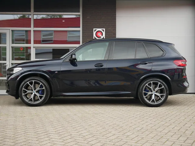 BMW X5 xDrive40i M Sport High Executive NL Auto| 2e Eigenaar| Trekhaak. Kenteken: XR-094-X; Merk: BMW; Model: X5; APK tot: 25-09-2027; Tellerstand: 96423 KM; Carrosserievorm: SUV; Aantal deuren: 5; Brandstofsoort: Benzine; Bouwjaar: 2019; Transmissie: Automaat; Kleur: blauw Metallic; Bekleding: Leder; Kleur interieur: wit; Motorinhoud: 2998 cc; Aantal cilinders: 6; Motorcode: B58B30C; Vermogen: 250 kW / 341pk; Ledig gewicht: 2035 kg; Max. trekgewicht: 3500 kg; Aantal zitplaatsen: 5; Verbruik: 8.7 l/100 km; BTW/Marge: Marge, de BTW is niet aftrekbaar; Lengte: 492 cm; Breedte: 200 cm; Hoogte: 1745 cm; Aantal sleutels: 2; Onderhoudshistorie aanwezig: Ja; Motorrijtuigenbelasting: € 387 - 423 per kwartaal; Emissieklasse: Euro 6. Pakket: X Line. Aluminium delen exterieur. Pakket: Comfort Access pakket. Elektrisch bedienbare achterklep met sensorsturing; Keyless entry. Comfort. Boordcomputer; Cruise control; Regensensor. Exterieur. Achterruit apart te openen; Adaptief demping systeem...