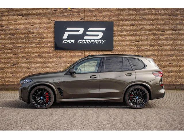BMW X5 xDrive50e M-sport Individual, FULL OPTION, BTW, Leder, Sky Lounge, Luchtvering, H&K, Trekhaak, Ambient, 360 Cam, Soft-Close. BMW X5 xDrive50e M-sport Individual FULL OPTION, SOH 92,3%. Kenteken: KFP-23-P; Merk: BMW; Model: X5; APK tot: 28-11-2027; Tellerstand: 39387 KM; Carrosserievorm: SUV; Aantal deuren: 5; Brandstofsoort: Hybride (Elektrisch/Benzine); Accucapaciteit: 30 kWh; Bouwjaar: 2023; Transmissie: Automaat; Kleur: grijs Metallic; Kleurnaam: Manhattan Metallic; Bekleding: Leder; Kleur interieur: bruin; Interieurnaam: Tartufo; Motorinhoud: 2998 cc; Aantal cilinders: 6; Vermogen: 360 kW / 490pk; Ledig gewicht: 2395 kg; Aantal zitplaatsen: 5; Verbruik: 0.8 l/100 km; BTW/Marge: BTW aftrekbaar, de prijs is inclusief BTW; Aantal sleutels: 2; Onderhoudshistorie aanwezig: Dealer onderhouden; Bandenmaat voor: 275/35/22; Bandemaat achter: 315/30/22. Comfort. Cruise control; Regensensor. Exterieur. Achterruitwisser; Adaptief demping systeem; Aluminium delen exterieur...