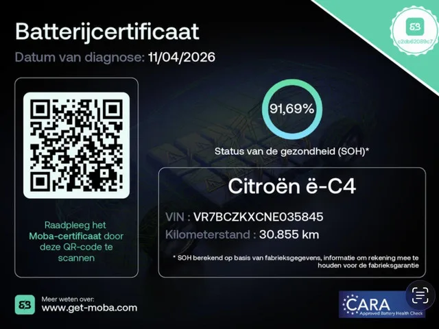 Citroën Ë-C4 Shine 50 kWh | 91.69% SOH | Camera | Head-up display |