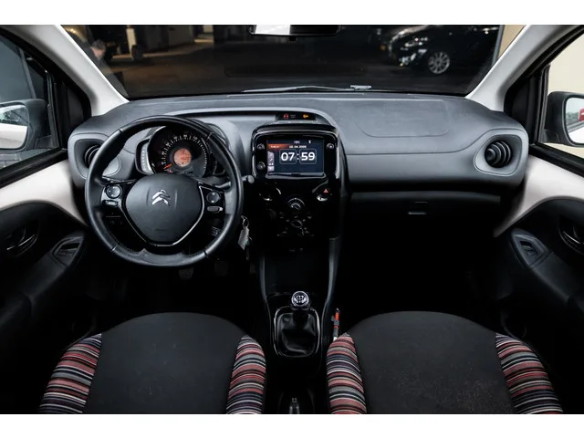 Klein rijden, groot genieten! Van de wendbaarheid, het makkelijke inparkeren, de lage wegenbelasting en het lage brandstofverbruik bijvoorbeeld. De motor in deze Citroen maakt een vlotte rijstijl mogelijk en is toch zuinig met brandstof. Bij de uitrusting van deze auto horen onder meer 15 inch lichtmetalen velgen, LED-dagrijverlichting en in delen neerklapbare achterbank. De achteruitrijcamera levert eersteklas parkeerservice. U weet precies hoeveel ruimte u nog heeft, in beeld en geluid. Gemakkelijk en veilig is de spraakbediening voor het audiosysteem. Daarbij kunt u het ook bedienen met de knoppen op het stuur. Deze auto heeft airconditioning aan boord. Ook lederen stuur, boordcomputer en lederen versnellingspook horen tot de voorzieningen op deze auto. Zoals u mag verwachten van deze Citroen C1 is hij uitgerust met een reeks aan actieve veiligheidssystemen. De brake assist zorgt voor een kortere remweg tijdens een noodstop. Bent u nieuwsgierig naar deze Citroen C1? Laat het ons...