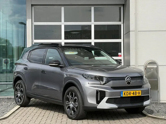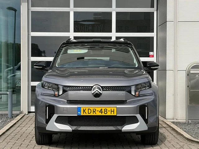 "ë" badge zij- en achterkant, 'Happy tags', 1x USB-C aansluiting vóór & 2x USB-C aansluiting achter, 6 Airbags (bestuurder + passagier / zij-airbags voor / gordijnairbags vóór en achter), 10,25" kleuren touchscreen, incl. Digitale Radio DAB+, Draadloos Apple Carplay™ en Android Auto, 12v aansluiting in middenconsole, 17" lichtmetalen velgen 'Sylvanite', Achterspoiler, Achteruitrijcamera, Active Lane Departure Warning System, Active Safety Brake (video) met Forward Collision Warning, Advanced Comfort Seats, Automatische lichtsensor met 'follow me home' verlichting, Automatische regensensor, B/C stijl in Glossy Black, Bandenreparatiekit, Bandenspanningscontrole systeem, Bekleding 'Black' stof en grijze stof 'Quadric' met bronzen accentstiksels, Boordlader 7,4kW - 1 fase, Buitenspiegels in Glossy Black, Centrale deurvergrendeling met afstandbediening, Citroën Advanced Comfort® vering met Progressive Hydraulic Cushions, Citroën C-ZEN lounge interieur, Citroën Connect ONE, Citroën Head-up Display, Climate control, Color Clips, Connect PLUS (12 maanden gratis), Cruise Control met snelheidsbegrenzer, Dakrails in Glossy Black, DC snelladen tot 100 kW, Digitaal instructieboekje, Driver Attention Alert, Electronic Stability Program (ESP) met Intelligent Traction Control (ABS), Elektrisch bedienbare ramen vóór & achter, Elektrische handrem, Elektrisch inklapbare & verwarmde buitenspiegels, Elektrisch verstelbare buitenspiegels, Extra getinte achterste zijruiten en achterruit, Handgrepen in Glossy Black, Hill Start Assist, Hoge middenconsole met armsteun en opbergruimte, In delen neerklapbare achterbankleuning (60/40), In hoogte en diepte verstelbaar stuurwiel, In hoogte verstelbare bestuurdersstoel, Installatievoorziening kinderzitjes (ISOFIX) op achterbank, Koplampen met LED verlichting, Laadkabel type 2 (CCS) mode 3, LED dagrijverlichting, metallic, Mono Tone dak, Opbergruimte in middenconsole met 2 bekerhouders, Opbergruimte in vóór- en achterdeuren t.b.v. fles van 1 liter, Parkeersensoren achter, Remote Control, Skidplates vóór & achter, Smartphone Station, Stof, Stuurwielbediening, Stuurwiel bekleed met kunstleder en chromen afwerking, Terre de Toscane afwerking op dashboard en voordeuren, Verkeersbordherkenning, Vernislak, Vloermatten vóór & achter, Wielomlijsting uitgevoerd in matzwart