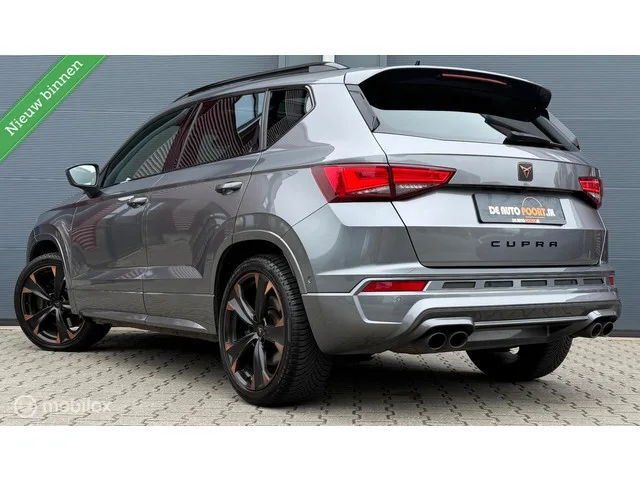 CUPRA Ateca 2.0 TSI 4DRIVE Kuipstoel/Pano.dak/Trekhaak/Viritual. Merk: CUPRA; Model: Ateca; Tellerstand: 71476 KM; Carrosserievorm: SUV; Aantal deuren: 5; Brandstofsoort: Benzine; Bouwjaar: 2022; Transmissie: Automaat; Kleur: grijs Metallic; Motorinhoud: 1984 cc; Aantal cilinders: 4; Vermogen: 221 kW / 301pk; Ledig gewicht: 1515 kg; Max. trekgewicht: 2100 kg; Aantal zitplaatsen: 5; Verbruik: 8.5 l/100 km; BTW/Marge: Marge, de BTW is niet aftrekbaar; Onderhoudshistorie aanwezig: Dealer onderhouden. Pakket: Technology Pack. Achteruitrij assistent; Cruise control adaptief; Dodehoek detectie; File assistent; Grootlichtassistent; Rijstrooksensor met correctie; Verkeersbord detectie. Pakket: Upgrade Beats Audio. Audio installatie premium. Pakket: Upgrade Winter. Koplampreiniging; Ruitensproeiers/wisserbladen verwarmbaar; Voorstoelen verwarmd. Comfort. Cruise control; Regensensor. Exterieur. Adaptief demping systeem; Buitenspiegels elektrisch inklapbaar; Buitenspiegels elektrisch...