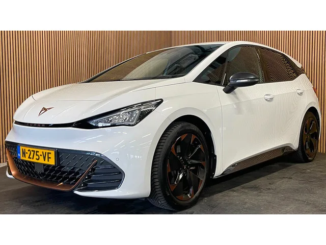 Op dit moment hebben wij meerdere Cupra Born's op voorraad, waardoor je niet voor niets gereden komt! Dat is dan ook mede de reden dat mensen door heel het land naar ons toe komen! Tot ziens bij DK-Electric! Achterwielaandrijving; Bandenmaat: 215/50 R19; 150 kW; Gewicht: 1.711kg; Laadvermogen: 549kg; GVW: 2.260kg; LxBxH: 432x178x154cm; Wielbasis: 277cm; Aanwezige accu: gekocht; Accu: 58kWh, 92%; Accu laden: Type 2, 3-fasen, 11 kW, 84 km/u, 16 uur en 6 minuten; Accu snelladen: Combined Charging System, 568 km/u, 2 uur en 38 minuten; Actieradius: 421 km; 0-100 km/h: 7,3s; Topsnelheid: 160km/u; Interieurkleur: zwart; 5 zitplaatsen; 13,8 kWh/100km; Energielabel A; Dealer onderhouden (onderhoudsboekjes aanwezig); APK bij aflevering; Schadevrij; 2 sleutels (2 handzenders); Wegenbelasting: € 214-€ 234p/kwrt; vanaf € 307 p/m (informeer naar de mogelijkheden en voorwaarden); Optioneel afleverpakket: BOVAG 12 maanden pakket (optioneel) (€ 995); N-275-VF