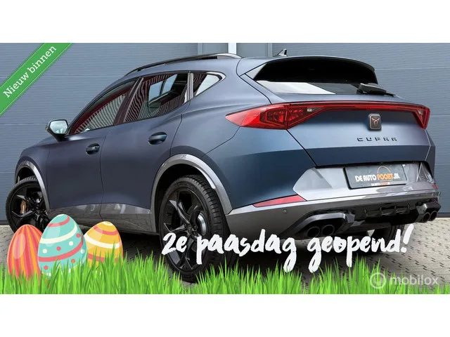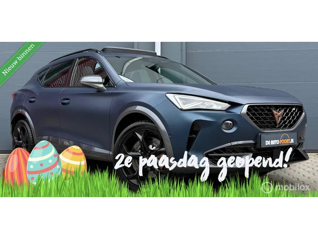 CUPRA Formentor 2.0 TSI 4DRIVE 310PK Pano.dak/Brembo/Leder/LED. Merk: CUPRA; Model: Formentor; Tellerstand: 54635 KM; Carrosserievorm: SUV; Aantal deuren: 5; Brandstofsoort: Benzine; Bouwjaar: 2021; Transmissie: Automaat; Kleur: blauw; Bekleding: Leder; Motorinhoud: 1984 cc; Aantal cilinders: 4; Vermogen: 228 kW / 311pk; Ledig gewicht: 1544 kg; Max. trekgewicht: 1800 kg; Aantal zitplaatsen: 5; Verbruik: 8.2 l/100 km; BTW/Marge: Marge, de BTW is niet aftrekbaar; Onderhoudshistorie aanwezig: Dealer onderhouden. Pakket: Launch pakket. Elektrisch bedienbare achterklep met sensorsturing; Elektrisch glazen panorama-dak; Elektrisch verstelb. bestuurdersstoel met geheugen; Lederen bekleding; Voorstoelen verwarmd. Pakket: Leder pakket. Elektrisch verstelb. bestuurdersstoel met geheugen; Lederen bekleding; Voorstoelen verwarmd. Comfort. Regensensor. Exterieur. Achterspoiler; Adaptief demping systeem; Buitenspiegels elektrisch inklapbaar; Buitenspiegels elektrisch verstel- en verwarmbaar...