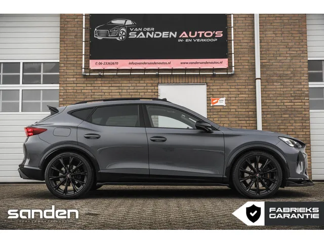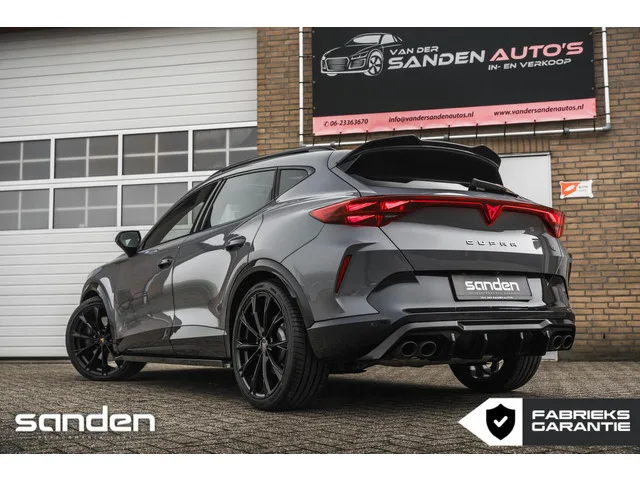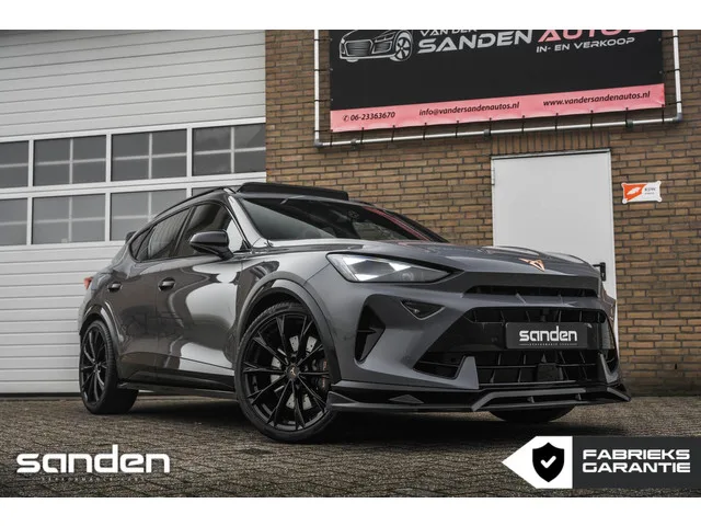 CUPRA Formentor 2.0 TSI VZ 4DRIVE|333pk|Panoramadak|Sennheiser|Memory|MaxtonDesign|MatrixLED|Sportstoelen|Leder|20 inch|Stoelverw. CUPRA Formentor 2.0 TSI VZ 4DRIVE|333pk|Pano|Sennheiser|Mem. Kenteken: JSH-10-T; Merk: CUPRA; Model: Formentor; APK tot: 20-11-2028; Tellerstand: 6600 KM; Carrosserievorm: SUV; Aantal deuren: 5; Brandstofsoort: Benzine; Accucapaciteit: 26 kWh; Bouwjaar: 2024; Transmissie: Automaat; Kleur: grijs; Kleurnaam: Graphene Grey; Bekleding: Leder; Kleur interieur: zwart; Interieurnaam: Vol lederen sportstoelen; Motorinhoud: 1984 cc; Aantal cilinders: 4; Vermogen: 245 kW / 334pk; Ledig gewicht: 1541 kg; Max. trekgewicht: 1700 kg; Aantal zitplaatsen: 5; Verbruik: 1.6 l/100 km; BTW/Marge: Marge, de BTW is niet aftrekbaar; Lengte: 445 cm; Breedte: 184 cm; Aantal sleutels: 2; Onderhoudshistorie aanwezig: Dealer onderhouden; Fabrieksgarantie tot: 20-11-2026. Pakket: Pack Eclipse. Matrix LED koplampen. Pakket: Stoelen pakket. Elektrisch verstelbare stoel(en) met...