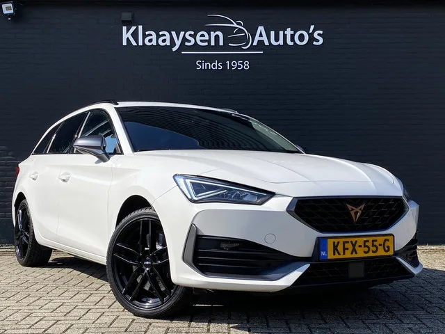 Bijzonder fraaie en sportieve CUPRA Leon Sportstourer 1.4 e-Hybrid 245 pk plug in hybride uitvoering! Afkomstig van de 1e eigenaar, slechts 74.849 kilometer, dealer onderhouden met complete documentatie. Voorzien van full map navigatie, cruise control, led koplampen en achterlichten, sportstoelen met leder/stof interieur, climate control voor/achter, parkeersensoren, zwarte lichtmetalen velgen, privacy glas, 2x usb aansluiting, digitale cockpit, dab audio, bluetooth multimedia en telefoon, mistlampen, dakrailing, keyless start, rijstrook assistentie, licht en regensensor, schakelflippers, zwarte hemelbekleding, multif. stuurwiel, isofix aansluiting enz. Plug-in hybride; 6 versn., Automaat; Modeljaar: 2021; Voorwielaandrijving; 180 kW; 250 Nm; 4 cilinders; 1.395cc; Gewicht: 1.617kg; Laadvermogen: 473kg; GVW: 2.090kg; Max. trekgewicht: 1.500kg; LxBxH: 466x180x144cm; Wielbasis: 268cm; Aanwezige accu: gekocht; Accu: 12kWh, Type lithium-ion; Stekkeraansluiting: Type 2; 1-fase lader; Accu...