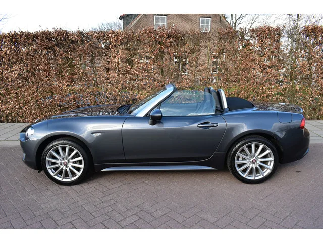 Mooie sportieve Cabriolet met een Automaat. Deze auto is voor 90% Mazda MX5 en 10% Italiaans. Deze goede betrouwbare auto is voorzien van. mooie opties zoals Lederen bekleding, Cruise Control, Achteruitrij Camera, 17'' Sportvelgen, Keyless Entry en Starten enz enz. De auto wordt afgeleverd. met 12 maanden volledige garantie en zonder extra bijkomende kosten. 6 versn., Automaat; Modeljaar: 2017; Achterwielaandrijving; 104 kW; 240 Nm; 4 cilinders; 1.368cc; Gewicht: 1.045kg; Laadvermogen: 290kg; GVW: 1.335kg; LxBxH: 408x174x123cm; Wielbasis: 231cm; 45l tank; 0-100 km/h: 7,6s; Topsnelheid: 214km/u; Interieurkleur: Donker grijs; 2 zitplaatsen; 6,6 l/100km; 9,1 l/100km; 5,2 l/100km; 153 g/km CO₂; Energielabel G; Euro 6; Dealer onderhouden (onderhoudsboekjes aanwezig); Eerste eigenaar; APK: tot aug. 2026; 2 sleutels (2 handzenders); 12 maanden volledige garantie.; 12 maanden garantie; Wegenbelasting: € 119-€ 129p/kwrt; vanaf € 380 p/m (informeer naar de mogelijkheden en voorwaarden)