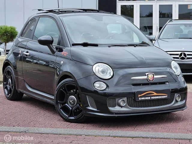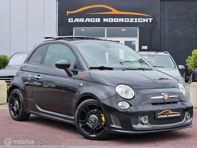 Fiat 500 Abarth 1.4 T-Jet 165PK 595 PANORAMADAK|LEDER|XENON|AUTOMAAT|ECC/AIRCO|INTERSCOPE SOUND SYSTEM|PDC. Merk: Fiat; Model: 500; APK tot: 31-08-2026; Tellerstand: 105307 KM; Carrosserievorm: Hatchback; Aantal deuren: 3; Brandstofsoort: Benzine; Bouwjaar: 2016; Transmissie: Automaat; Kleur: zwart; Motorinhoud: 1368 cc; Aantal cilinders: 4; Vermogen: 121 kW / 165pk; Ledig gewicht: 1020 kg; Aantal zitplaatsen: 4; Verbruik: 5.8 l/100 km; BTW/Marge: Marge, de BTW is niet aftrekbaar. Exterieur. Buitenspiegels elektrisch verstelbaar; Centrale vergrendeling met afstandsbediening; Chroom delen exterieur; Extra getint glas achter; LED dagrijverlichting; Lichtmetalen velgen 17"; Mistlampen voor; Parkeersensor achter. Infotainment. DAB; Multimedia-voorbereiding; Radio; Stuur multifunctioneel. Interieur. Achterbank in delen neerklapbaar; Airco automatisch; Bestuurdersstoel in hoogte verstelbaar; Elektrische ramen voor; Lederen bekleding; Sportstoelen; Stuur leder; Stuur verstelbaar...