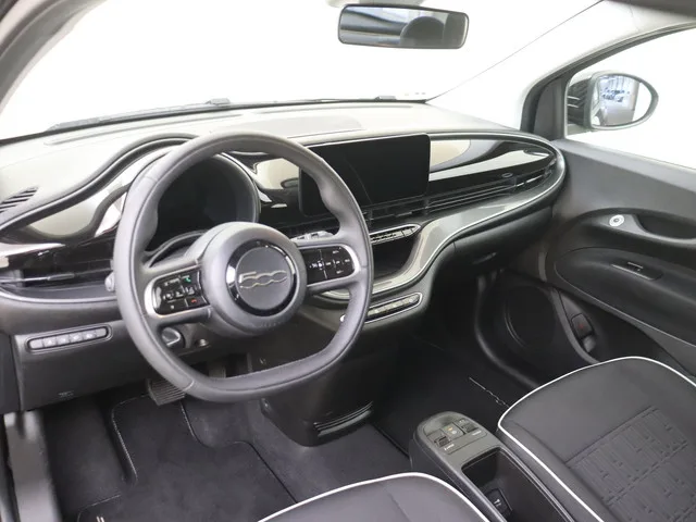 Schoonheid van buiten, schone techniek van binnen. Deze Fiat 500 maakt elektrisch rijden aantrekkelijker dan ooit. De elektromotor laat jou geluidloos over de weg gaan. Wat een verademing, en zoveel power ook nog! Het is vermeldenswaard dat deze auto maar 29157 kilometer heeft gereden sinds 2023. Mooi om te zien en heerlijk om in te zitten zijn de sportstoelen, die je onderweg optimale ondersteuning geven. Verder is de Fiat uitgerust met: 18 inch lichtmetalen velgen, Full LED koplampen, sportonderstel, sportinterieur, donker getint glas achter en LED-achterlichten. Omdat goed geïnformeerd rijden tegenwoordig om veel meer draait dan alleen snelheid en brandstofpeil, laat het digitale dashboard alle functies zien die je nodig hebt. Pech of storing, altijd vervelend. Maar met Connected Services weet je direct wat eraan scheelt. En dus ook wat er moet gebeuren. Onderweg geniet je van de kwaliteit van het audio-installatiesysteem met dab-ontvangst. De bediening is gemakkelijk via knoppen...