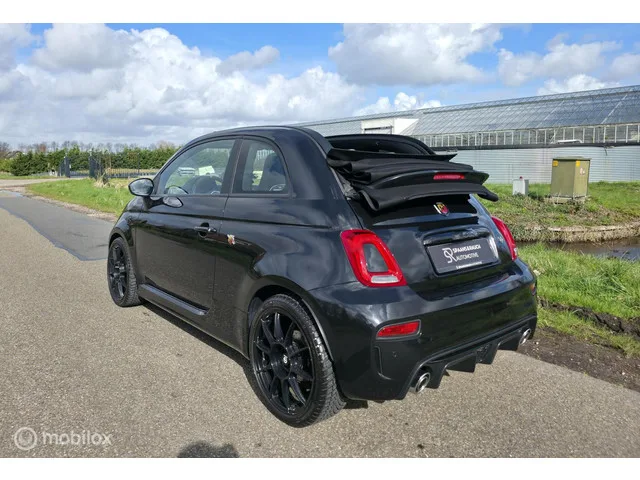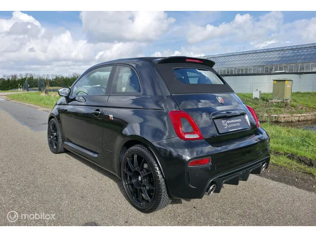Fiat 500 C 1.4 T-Jet Abarth 595 / Carbon / Beats / Navi. Kenteken: KFJ-55-D; Merk: Fiat; Model: 500 C; APK tot: 21-07-2027; Tellerstand: 26100 KM; Carrosserievorm: Cabrio; Aantal deuren: 2; Brandstofsoort: Benzine; Bouwjaar: 2023; Transmissie: Handgeschakeld; Kleur: zwart; Bekleding: Stof; Kleur interieur: zwart; Motorinhoud: 1368 cc; Aantal cilinders: 4; Vermogen: 121 kW / 165pk; Ledig gewicht: 1065 kg; Aantal zitplaatsen: 4; Verbruik: 6.9 l/100 km; BTW/Marge: Marge, de BTW is niet aftrekbaar; Aantal sleutels: 2; Onderhoudshistorie aanwezig: Ja. Comfort. Regensensor. Exterieur. Buitenspiegels elektrisch verstelbaar; Buitenspiegels verwarmbaar; Centrale vergrendeling met afstandsbediening; Dimlichten automatisch; Elektrisch bedienbare kap; Extra getint glas achter; LED dagrijverlichting; Lichtmetalen velgen 17"; Mistlampen voor; Sportvelgen. Infotainment. DAB; Multimedia-voorbereiding; Navigatiesysteem full map; Stuur multifunctioneel. Interieur. Achterbank in delen neerklapbaar...
