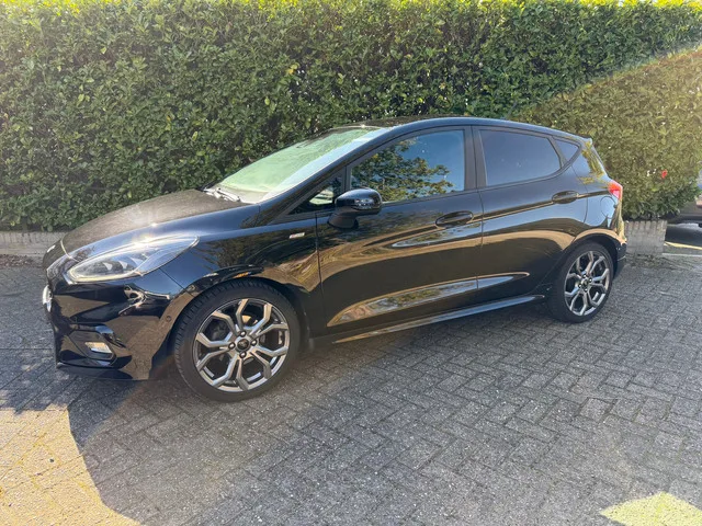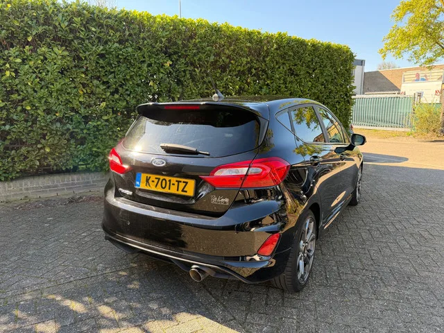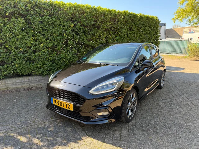 **Ford Fiesta 1.0 EcoBoost ST-Line X | Navigatie | LED | Parkeersensoren | Stoere Hatchback!**. Kenteken: **K701TZ**. Datum eerste toelating: **26-05-2020**. Datum eerste registratie: **08-03-2021**. Bouwjaar: **2020**. Zoek je een sportieve en complete hatchback die plezierig rijdt, zuinig is en ook nog eens geweldig oogt? Dan is deze Ford Fiesta 1.0 EcoBoost ST-Line X precies wat je nodig hebt. Deze stijlvolle auto, uitgevoerd in het chique zwart met bijpassende 17-inch lichtmetalen velgen en sportieve ST-Line details zoals side-skirts en een sportonderstel, combineert rijplezier met praktische bruikbaarheid in één pakket. Met zijn pittige 92 kW (125 pk) 1.0 EcoBoost-motor sprint je in slechts 10 seconden naar de 100 km/u en bereik je moeiteloos een topsnelheid van 195 km/u. De handgeschakelde zesversnellingsbak zorgt ervoor dat je het maximale uit deze krachtpatser haalt. Ondanks zijn sportieve prestaties is de Fiesta opvallend zuinig met een gemiddeld verbruik van slechts 4,2...