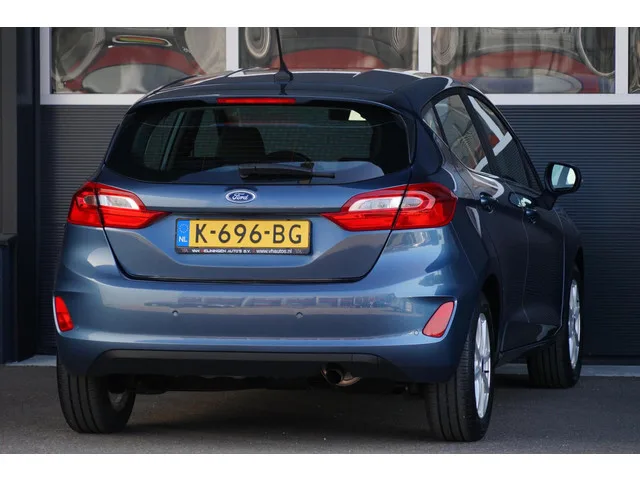 Ford Fiesta 1.0 EcoBoost Titanium, NL, clima, PDC, cruise. Kenteken: K-696-BG; Merk: Ford; Model: Fiesta; APK tot: 02-03-2028; Tellerstand: 54684 KM; Carrosserievorm: Hatchback; Aantal deuren: 5; Brandstofsoort: Benzine; Bouwjaar: 2020; Transmissie: Handgeschakeld; Kleur: blauw Metallic; Motorinhoud: 998 cc; Aantal cilinders: 3; Motorcode: M0JB; Vermogen: 70 kW / 95pk; Ledig gewicht: 1064 kg; Max. trekgewicht: 1000 kg; Aantal zitplaatsen: 5; Verbruik: 4.1 l/100 km; BTW/Marge: BTW aftrekbaar, de prijs is inclusief BTW; Lengte: 407 cm; Breedte: 176 cm; Aantal sleutels: 2; Onderhoudshistorie aanwezig: Dealer onderhouden; Motorrijtuigenbelasting: € 145 - 158 per kwartaal; Emissieklasse: Euro 6. Comfort. Boordcomputer; Cruise control; Regensensor. Exterieur. Achterruitwisser; Buitenspiegels elektrisch verstelbaar; Buitenspiegels in carrosseriekleur; Buitenspiegels verwarmbaar; Centrale vergrendeling met afstandsbediening; Dimlichten automatisch; LED dagrijverlichting; LED koplampen...