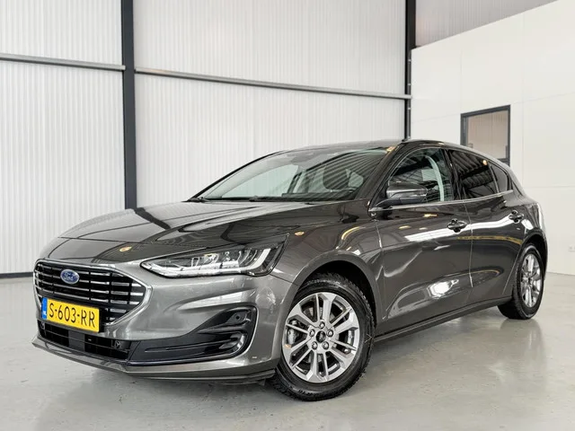 Ford Focus 1.0 EcoBoost Hybrid 125pk Titanium. Kenteken: S-603-RR; Merk: Ford; Model: Focus; APK tot: 30-03-2027; Tellerstand: 73780 KM; Carrosserievorm: Hatchback; Aantal deuren: 5; Brandstofsoort: Benzine; Bouwjaar: 2023; Transmissie: Handgeschakeld; Kleur: grijs Metallic; Kleurnaam: Magnetic Grey; Motorinhoud: 999 cc; Aantal cilinders: 3; Motorcode: R0DB; Vermogen: 92 kW / 125pk; Ledig gewicht: 1275 kg; Max. trekgewicht: 1100 kg; Aantal zitplaatsen: 5; Verbruik: 5.2 l/100 km; BTW/Marge: BTW aftrekbaar, de prijs is inclusief BTW; Lengte: 440 cm; Breedte: 184 cm; Aantal sleutels: 2; Onderhoudshistorie aanwezig: Ja; Motorrijtuigenbelasting: € 144 - 158 per kwartaal; Emissieklasse: Euro 6. Comfort. Cruise control; Regensensor. Exterieur. Achterspoiler; Buitenspiegels elektrisch inklapbaar; Buitenspiegels elektrisch verstel- en verwarmbaar; Chroom delen exterieur; Dimlichten automatisch; Extra getint glas achter; LED achterlichten; LED dagrijverlichting; Lichtmetalen velgen 16"...