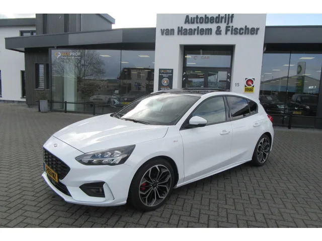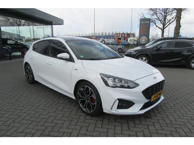 Mooie en Prima onderhouden Ford Focus 1.0 EcoBoost ST Line X Business. Recent 4 nieuwe banden, Elektrisch Panoramadak, Stoelverwarming, Stuurverwarming, Navigatie Enz. BOVAG garantie en geen afleveringskosten. 6 versn., Handgeschakeld; Modeljaar: 2018; Voorwielaandrijving; 93 kW; 200 Nm; 3 cilinders; 999cc; Gewicht: 1.180kg; Laadvermogen: 675kg; GVW: 1.855kg; Max. trekgewicht: 1.100kg; LxBxH: 451x184x152cm; Wielbasis: 270cm; 52l tank; 0-100 km/h: 10,0s; Topsnelheid: 200km/u; 5 zitplaatsen; 4,3 l/100km; 5,2 l/100km; 3,9 l/100km; 132 g/km CO₂; Energielabel A; Euro 6; Onderhoudsboekjes aanwezig; Aantal eigenaren: 3; APK: tot sep. 2026; BOVAG Garantie (12 maanden); Wegenbelasting: € 172-€ 188p/kwrt; vanaf € 267 p/m (informeer naar de mogelijkheden en voorwaarden); Beschikbare afleverpakketten: BOVAG Afleverbeurt (zonder meerprijs); BOVAG 40-puntencheck (zonder meerprijs); J-133-NZ