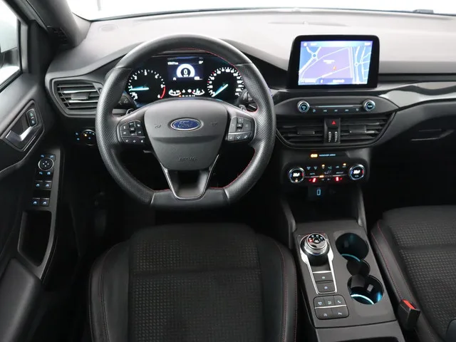 Achteruitrijcamera - projectie van de omgeving achter de auto in het navigatiesysteem, 10-weg handmatig verstelbare bestuurdersstoel (AGR gecertificeerd), Airconditioning incl. instellingen voor maximaal koelen of ontdooien, Automatisch dimmende binnenspiegel, EasyFold 60:40 achterbankleuning, Elektrisch bedienbare portierramen rondom, FordPower startbutton, In hoogte verstelbare passagiersstoel met lendensteunverstelling, Lederen stuurwiel in ST design met City Silver stiksel en afgeplatte onderkant, lederen versnellingspook, Lendensteunverstelling op de bestuurdersstoel, Middenconsole met armsteun, Sportstoelen voor, sportstuur, stuurbekrachtiging snelheidsafhankelijk, stuur verstelbaar, stuurwiel multifunctioneel